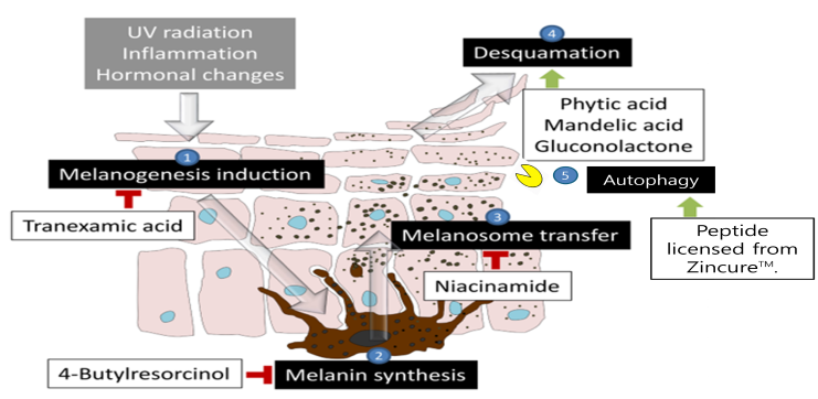 트라넥삼산, 부틸레조시놀, 나이아신아마이드 등 고기능 성분을 하나의 제형에 조합하고, 자체 라이선스한